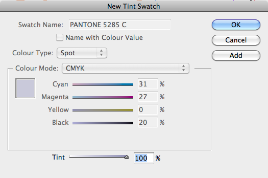 Pantone colour can be added and again tints can be made of the Pantone colours.